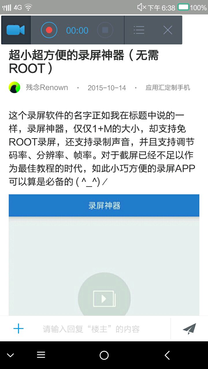 2015-10-14 [有回复] 应用汇定制手机超小超方便的录屏神器(无需ROOT)