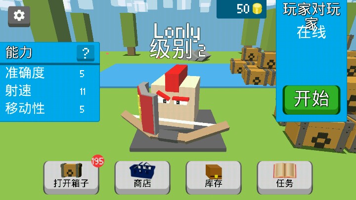 又是一部最近新出的新鲜游戏,与其他游戏不同的是,这一部竟是网络游戏。评测の惯例:◈玩法联网对战,随机匹配对手,两位玩家将会在一个场地里进行厮杀,直到一方将另一方击杀5次(离线也可玩)。只要用你那手上各种奇葩的武器击中对方一次就能杀了TA了。游戏采用的是双轮盘操作,但我觉得这样反而会增加游戏控制人物移动的难度,还是把方向键该成十字比较好一些。右轮盘则是包含了蓄力,攻击方向,发射这些功能。这样虽然说也提高了难度,但是也很有趣,考研玩家的操作水平了有木有。◈画面&人物画面是2d移动+3d画面+方块的奇怪组合,不过这也很有趣味性呀。是我从未见过的。至于人物么,看看帖子标题也知道这方块人物是呆萌呆萌的了,在初期,无论你怎么配合发型和眼睛,给你的感觉都只有呆萌这两个字了。但后期就不一样了,具体原因见下:◈解锁&收集每一局联网游戏结束之后都可以获得金币奖励,攒足100金币即可买一个箱子,箱子里有各种东西,武器啦,发型啦,服饰啦。而且每一件物品都有不同的属性,同时也可以改变人物形象。不过合理搭配才能获得胜利yoo。而据我目前所知,游戏的武器,发型,服饰每一样都超过了10件,然而你要想获得更好的装备,就只有不断地玩了。耐玩性up!◈其他请确保在网络良好的情况下参加pvp否则中途推出是没奖励的yoo。表问我怎么知道的。〒_〒在pvp中要注意各种道具,能捡到的尽量捡,捡不到也可以破坏,不让别人捡到。还有就是时刻注意上空,计算距离,不要让对手的飞弹打到咯。各位骚年下载吧。此乃真.好游戏也~