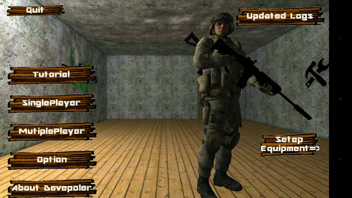 游戏使用著名的unity引擎,跟许多的Fps游戏一样,操纵方法仍然,但是增加了奔跑,去掉了令许多玩家困扰头疼hp血条,只要你没被打死就可以一直活着…最重要的是游戏中的机器人[BOT]可以自定义厉害程度和数量,如果你觉得你的手机够牛掰的话不妨输入99999…每局的战斗时间也是由你定的(先来一发999999999999999)…游戏最值得一提的是:这个居然有卫星打击啊……貌似像是使命召唤中的迫击炮技能…无限,空中鸟瞰敌人…但是由于游戏太小也存在许多bug…地图并不是完全封锁…不过好在掉下了地图就会死亡。