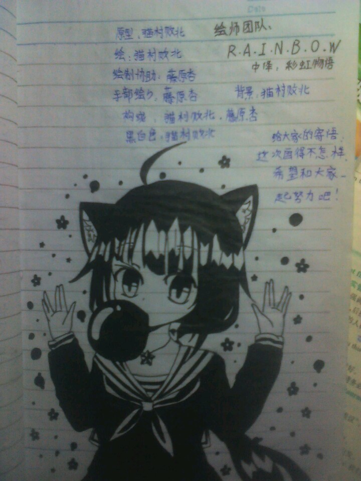还有两个画在作业本上的