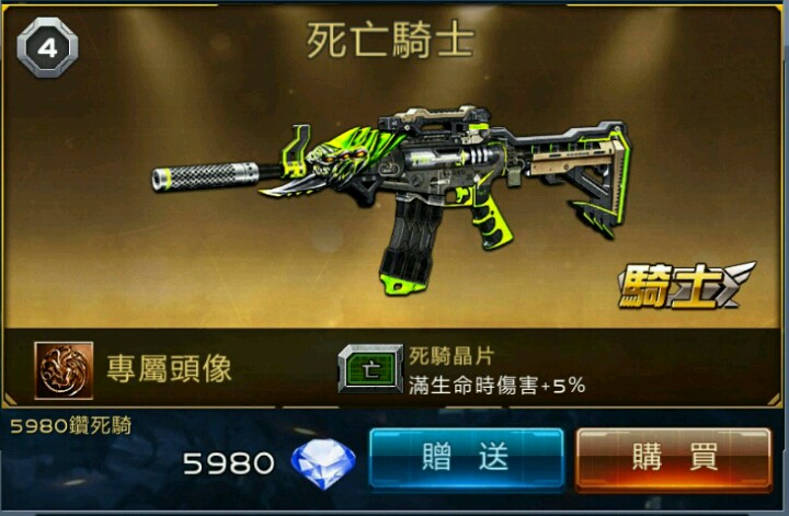 妈!这不用钱,更是好用极了,这枪有消音器,射击速度快,伤害一般般,精度高,有瞄准镜,射程一般,基本上是一把神器,如果想要,就要加入战队,用战队争霸币换,告诉你们一个秘密,把他升到终极9星已经是超越魔龙,为什么?哈哈!射击速度133,伤害27,魔龙是骗钱的啦!