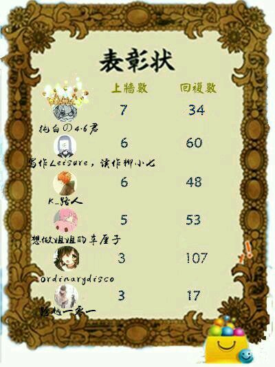 上榜用户中,居然没有: K路人、柳小七、果子狼、101、一组签名、池早早、车厘子、ponyo是红头发。这让人感到绝望!