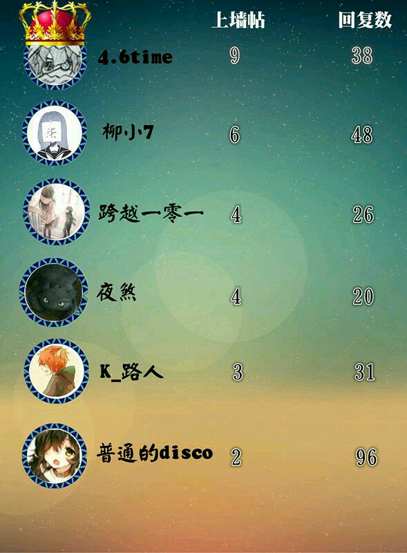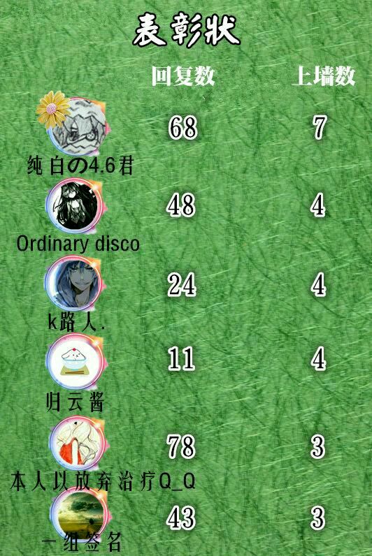 一周上墙用户排行榜!