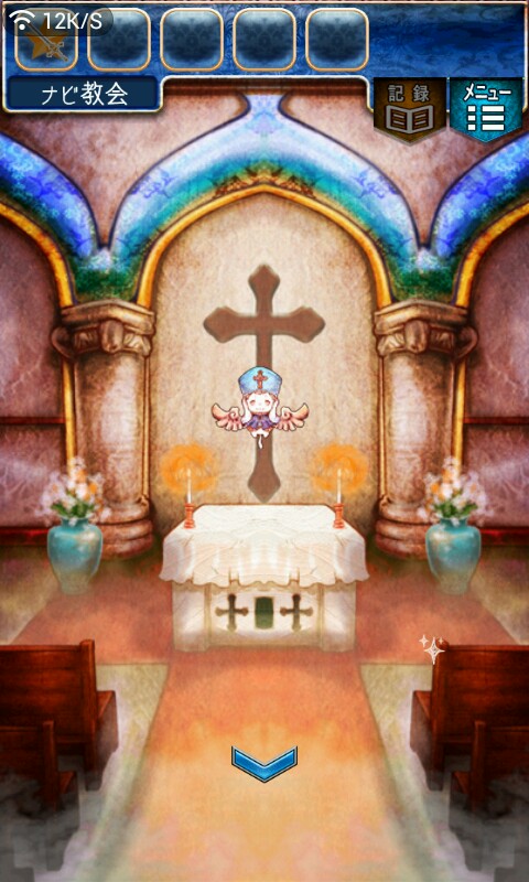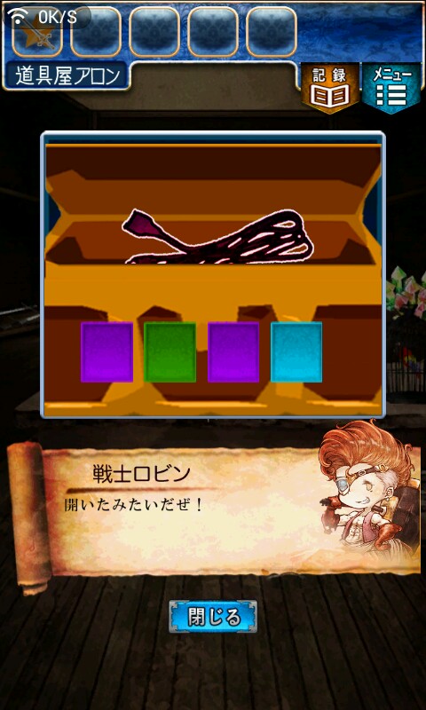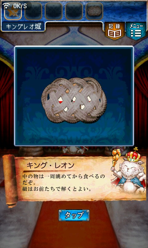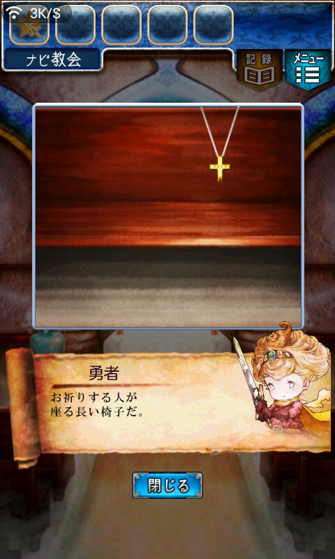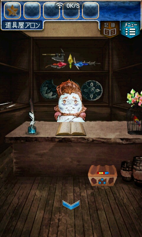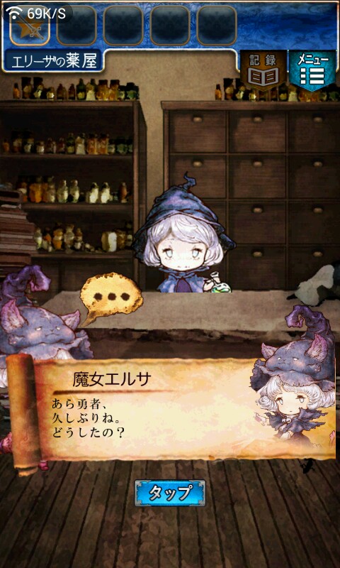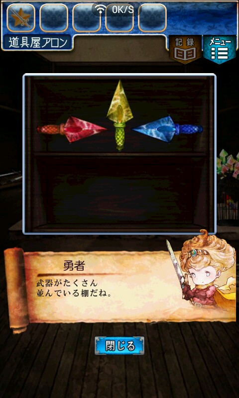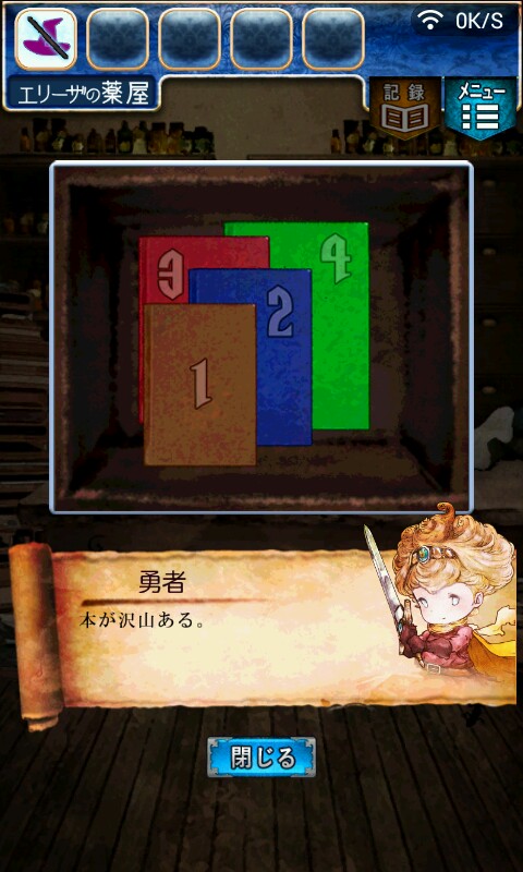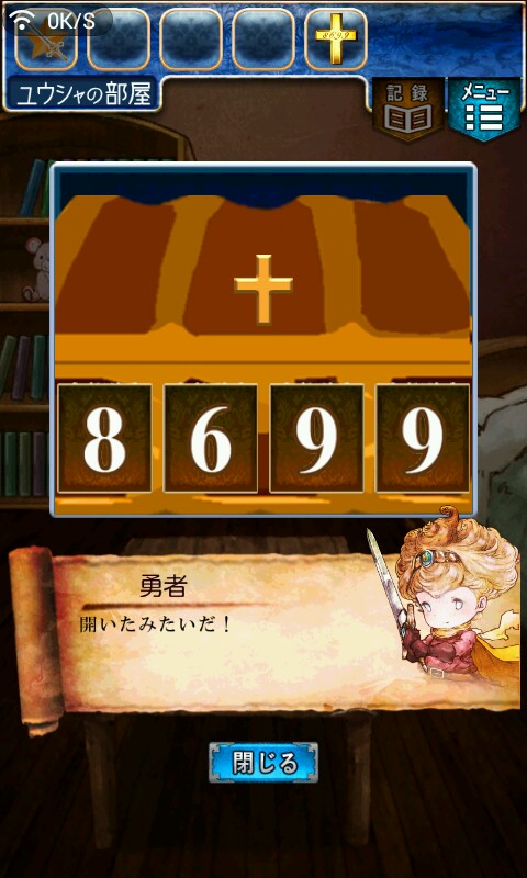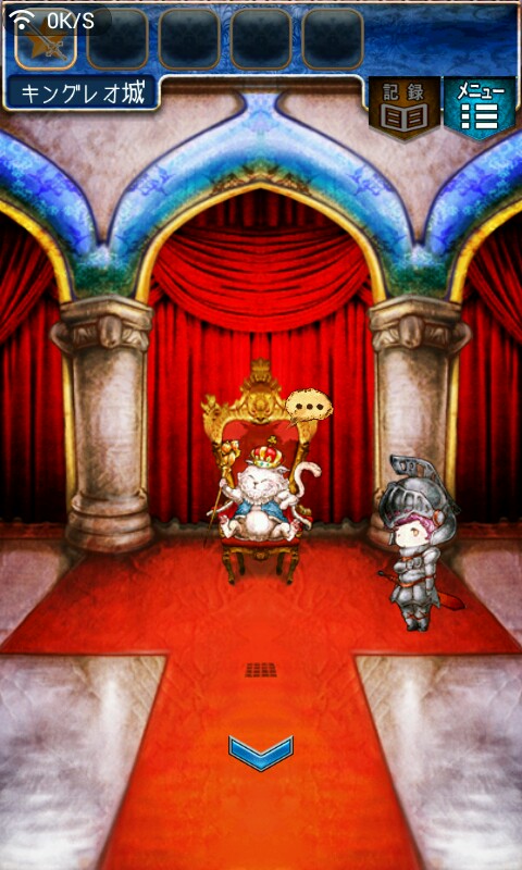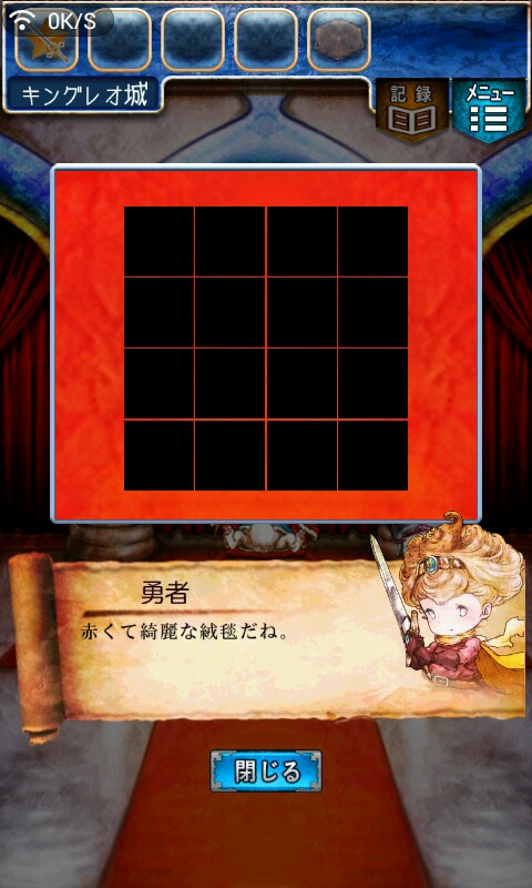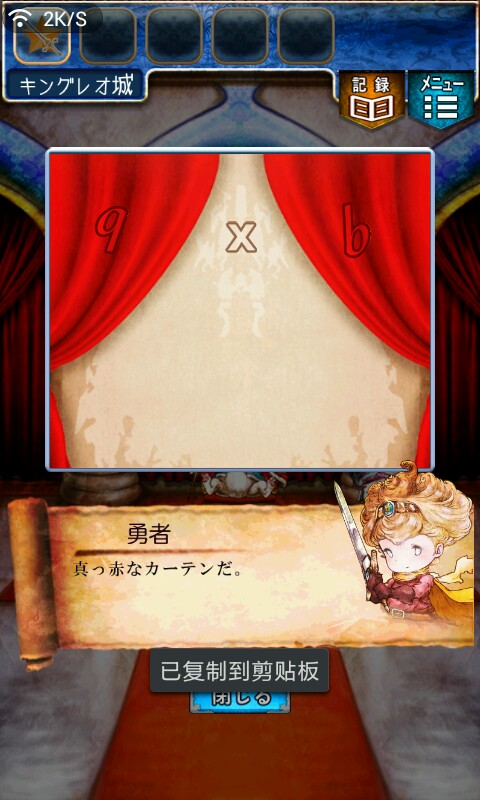 第一关,首先我们在ユウシャの部屋(勇者的房间),点中间红色箭头下面的蓝色箭头,来到城下町北,之后在右边上面挂着drug牌匾的房子(魔女的家)门前会有一个红色箭头,点击魔女家的门,发现门被树藤缠住了,之后我们道具栏第一个格子会有一个红色箭头(英雄切换栏),点击点我们的勇者,之后点门,勇者会砍掉门上的树藤,点门过关。