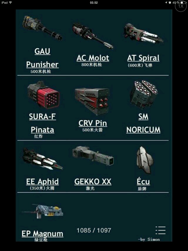 四crv(四个红色500米轻炸药),中程配法威力,不及四红炸,射程和装弹世界有优势,掌握好距离可以跟近战机甲正面肛