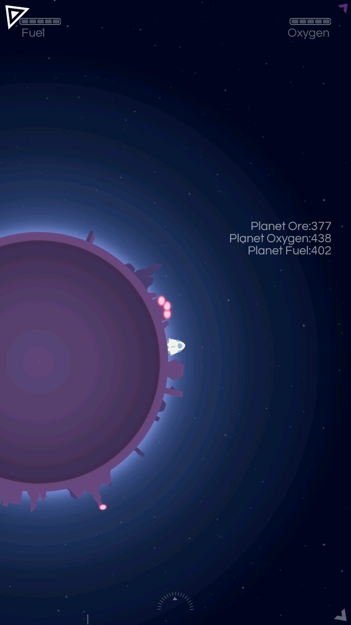 第三阶段是你找到了第一颗带植物的星球,会有一个特殊的三角标志给你指出。注意降落时候别撞在山上。然后待一会,这个星球上的植物就会消失,反正我也没看懂是干啥,然后你就可以找下一个这样的星球了。