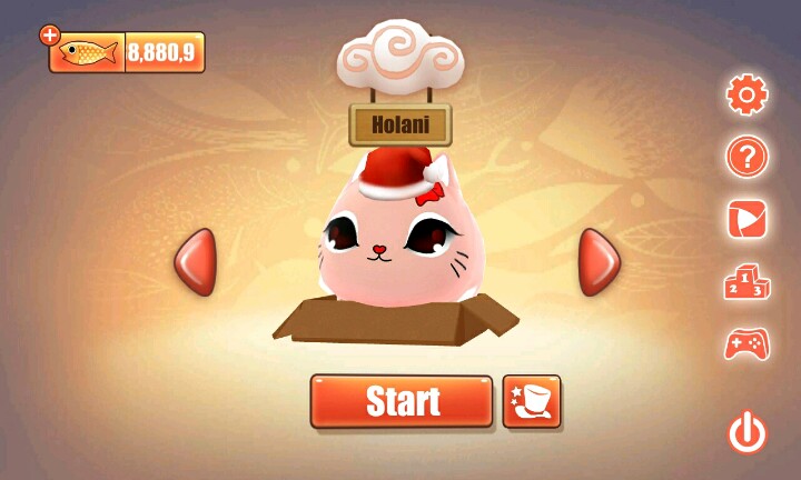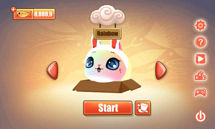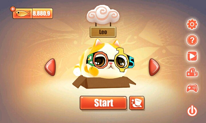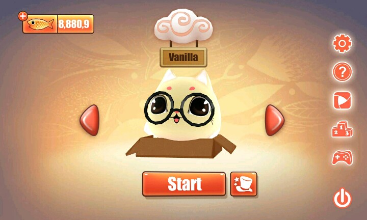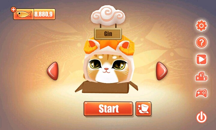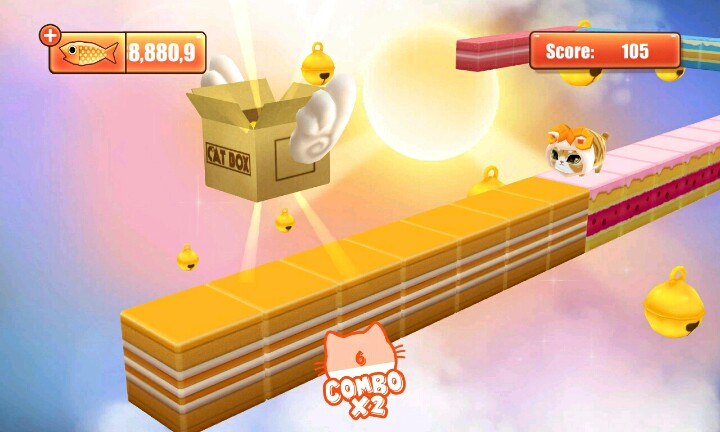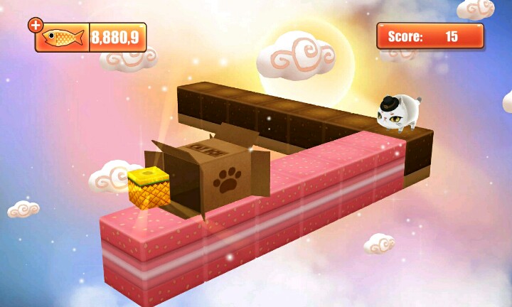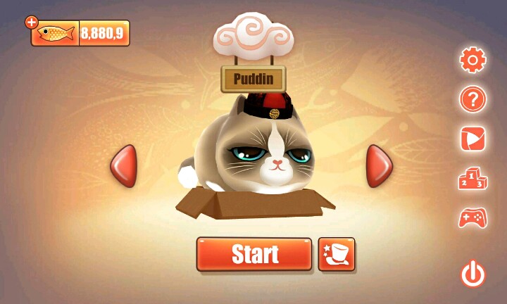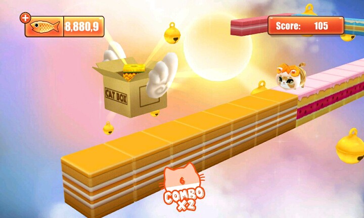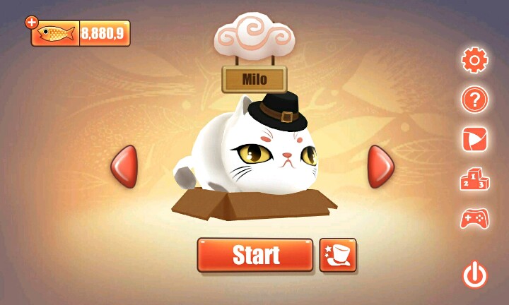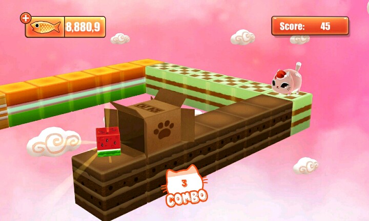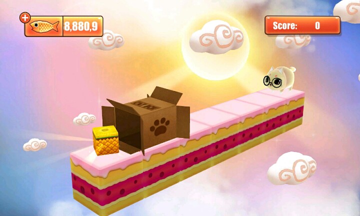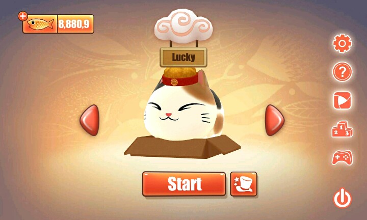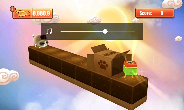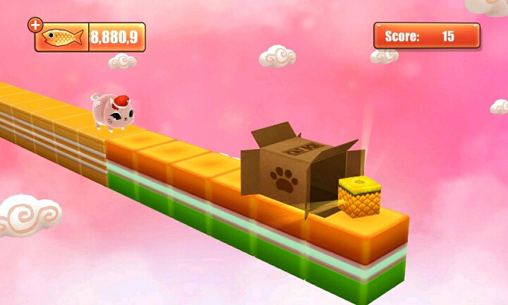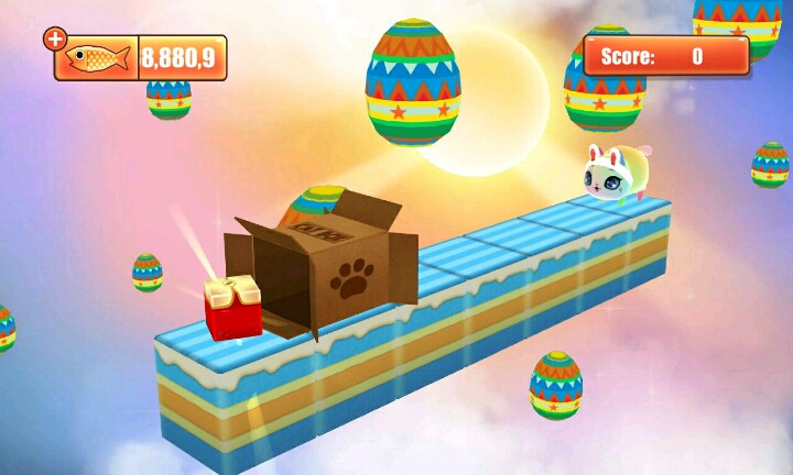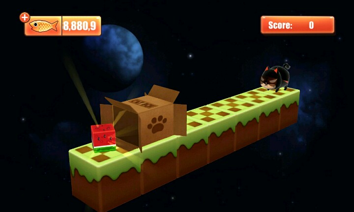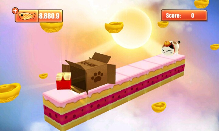 【温馨提示】:点击屏幕让小猫滑行∩_∩当小猫滑行到盒子时松开手指让小猫吃到小鱼和水果∩_∩但是到你松手时间早的话∩_∩小猫就会因为吃不到小鱼或者水果脚朝天的向你卖萌ฅ●ω●ฅ喵喵酱~