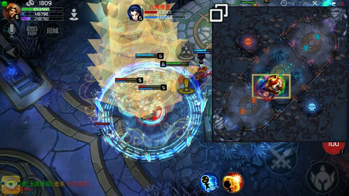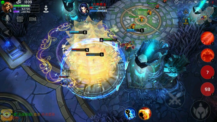 4 有优势了,你就继续像前面一样消耗,这时对方面临两个选择,打还是不打,不打的话你就继续他们回家,如果对面有打的想法的话,你在他们冲上来放技能之前,e他们一下,沉默他们。如果还冲上来的话,好。先w再q,在w的AOE伤害到来之前q他一下,减少法抗,造成更多伤害。(四图中我q没有而我也只是消耗下,根本没想到他们会上。)如果队友还没想法的话,那他们可以回家种田了。