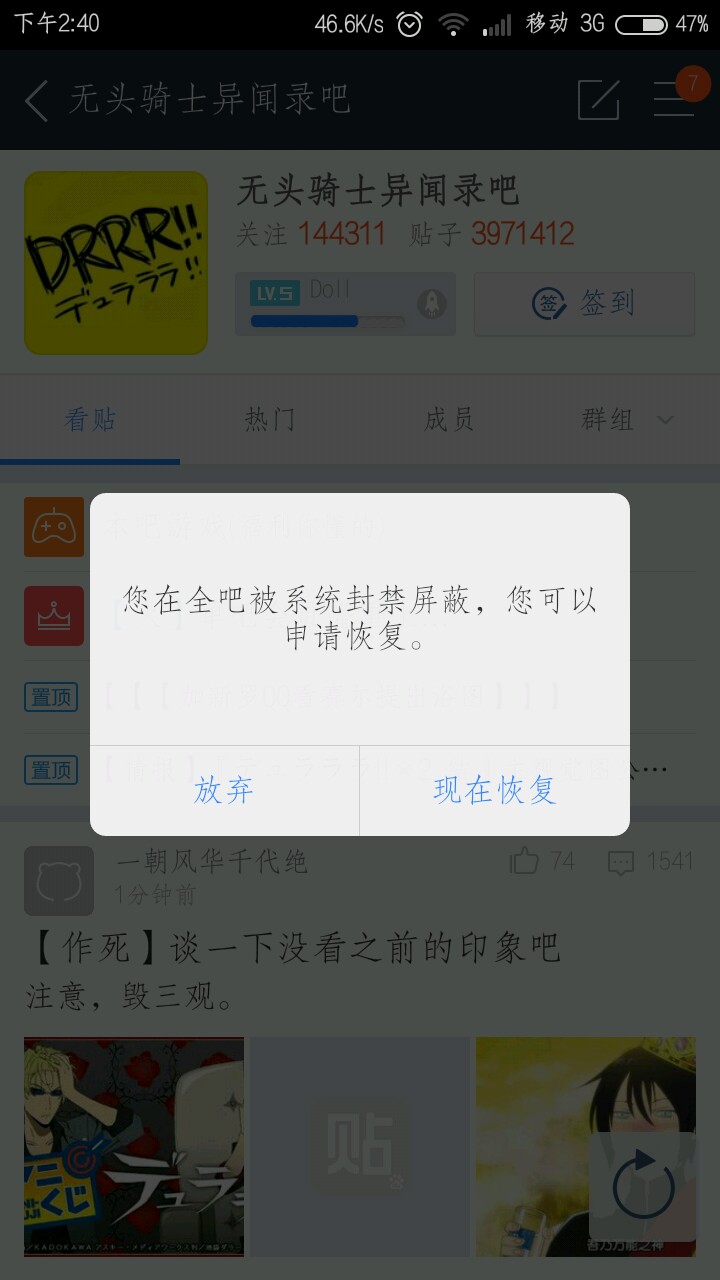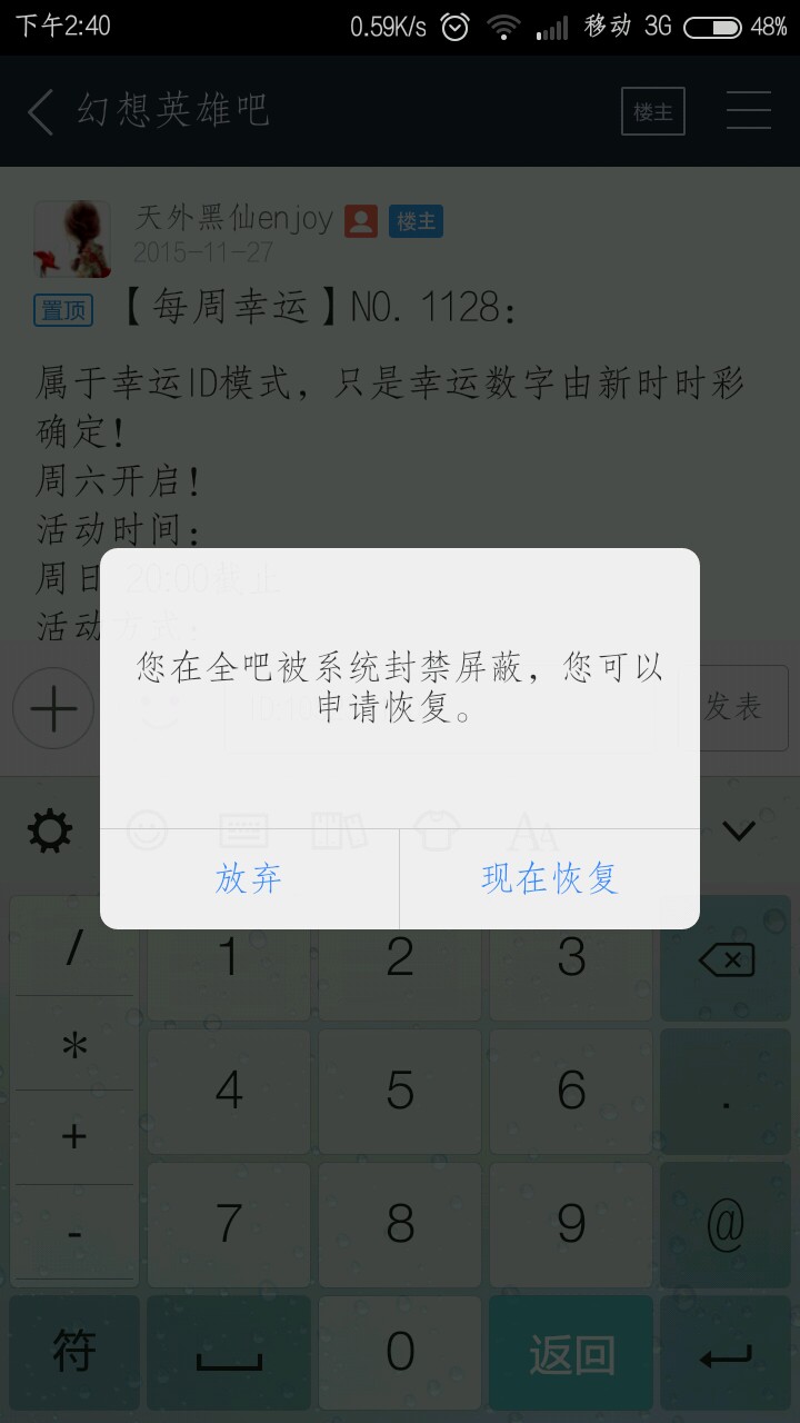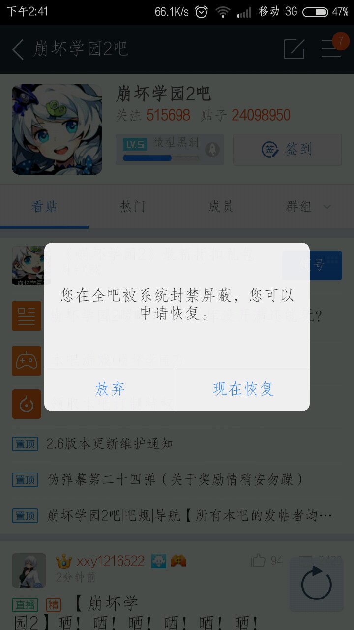 可以去电脑端查看封禁记录,然后开个小号继续水