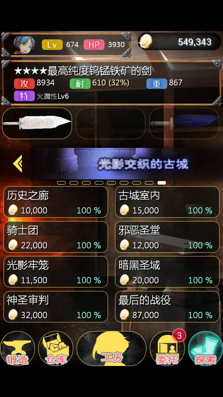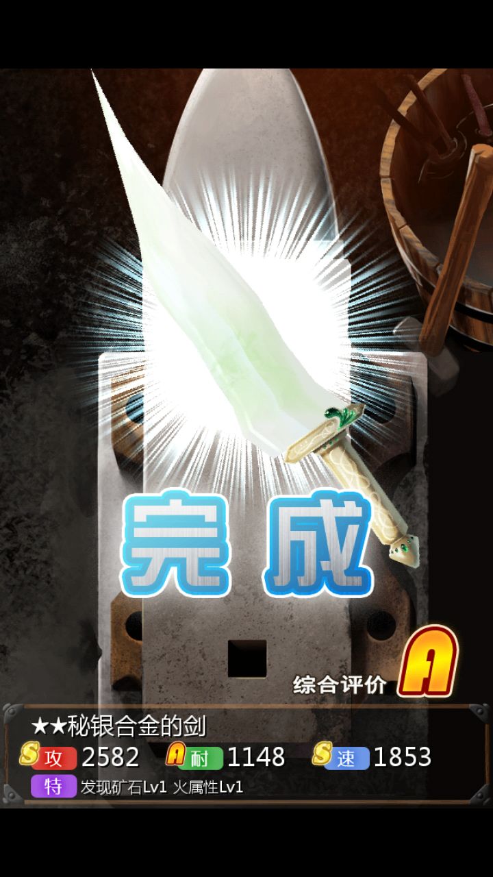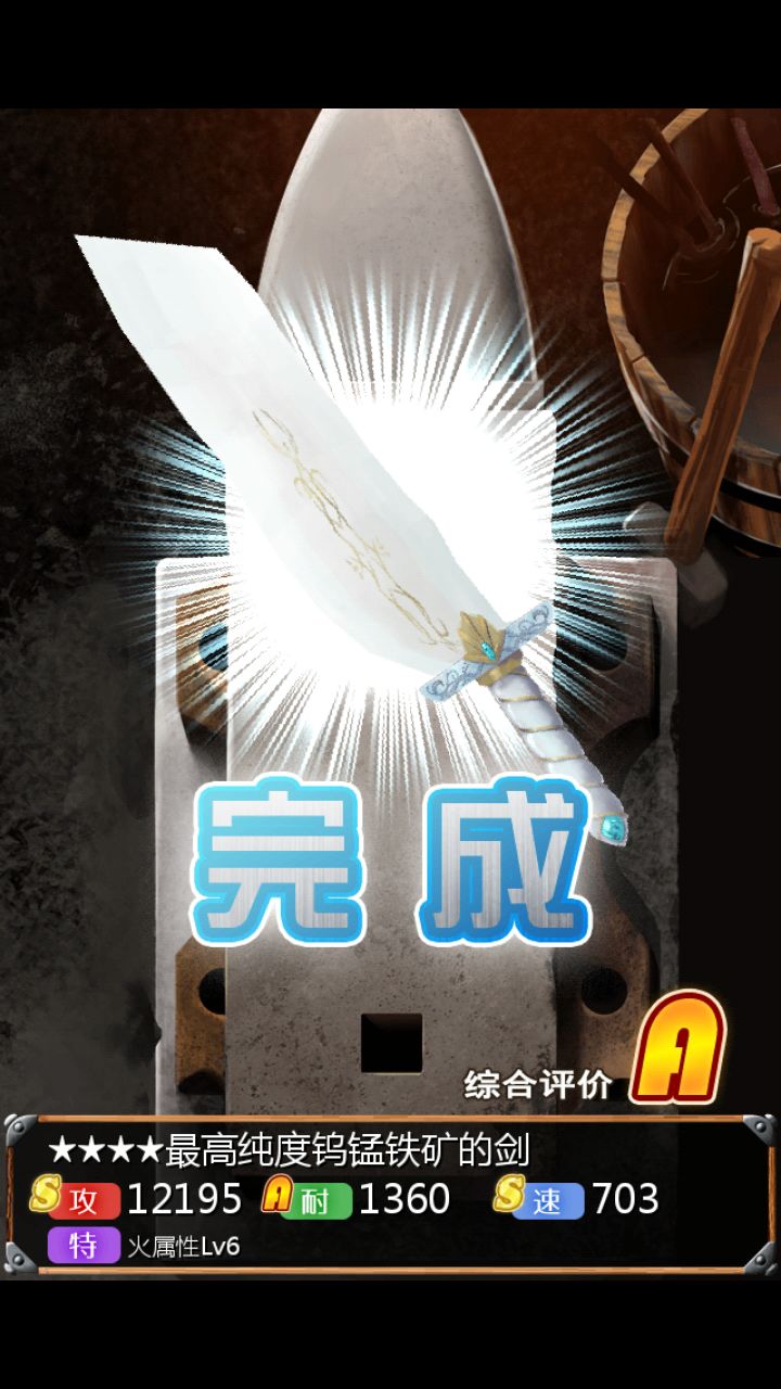 通关图和S武器镇楼!锻造打到14章,冒险17章,我记得锻造的13章应该是攻击力要求12000以上就成功!努力堆攻击吧,开始攻略:
