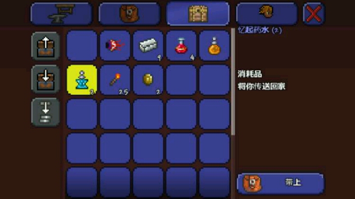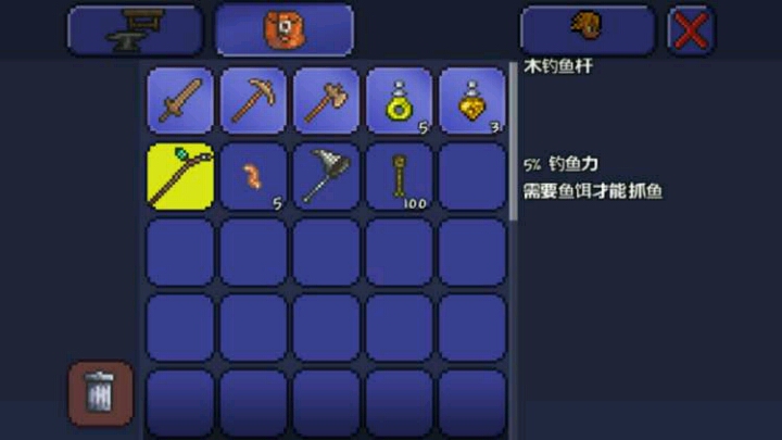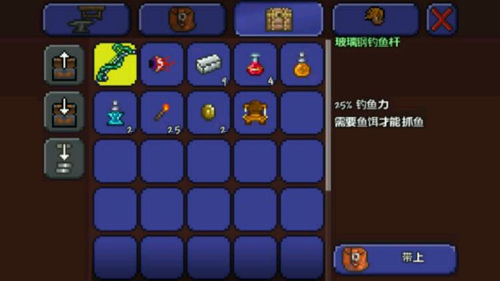 背包中多了鱼竿与捕虫网,鱼饵。药水的图变了