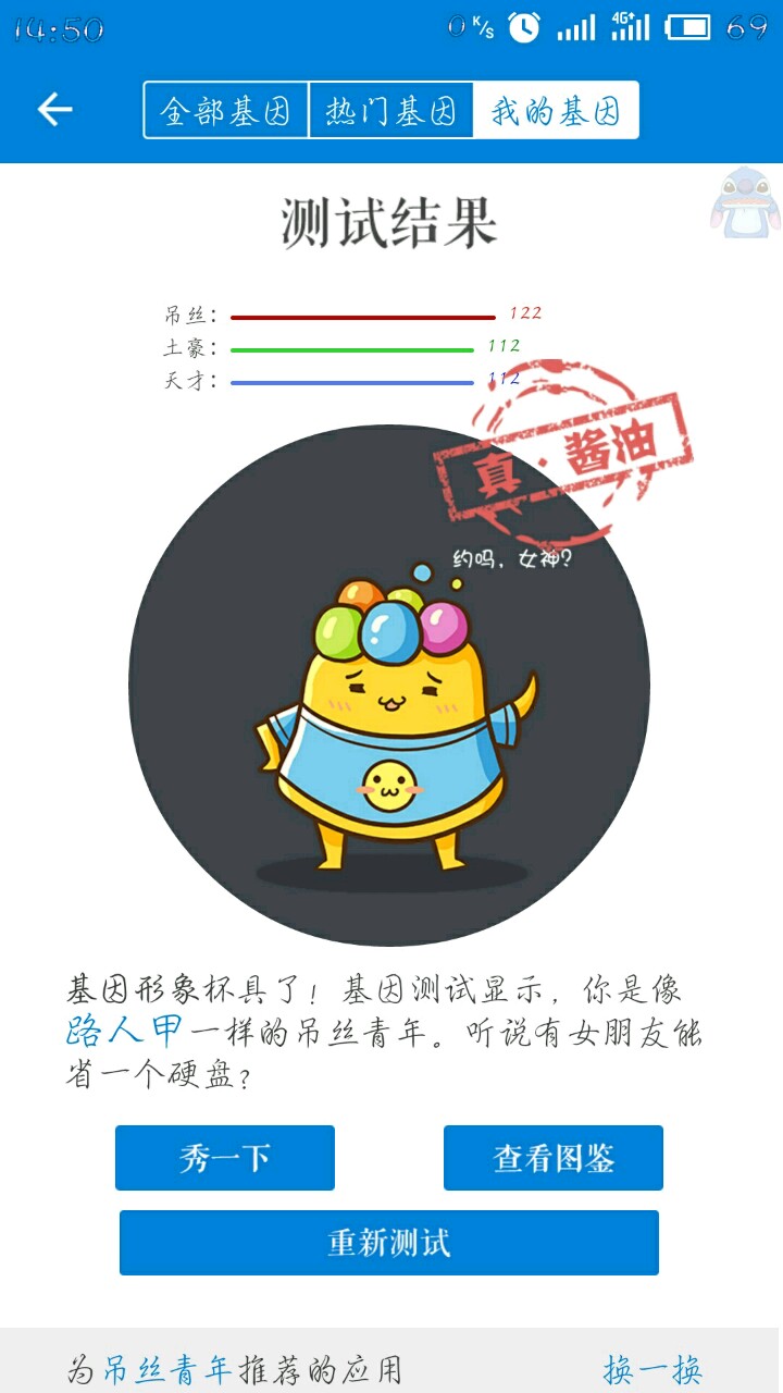hiahia曾经的我测出来是像黄小厨一样的居家能手。现在的我已经变了(๑><๑)