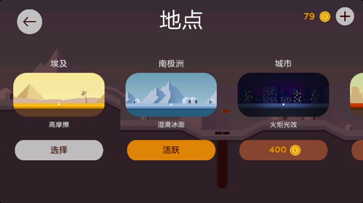 可更换的地图一览,已经解锁的埃及需要100金币,南极洲需要200金币,看10个广告就够了