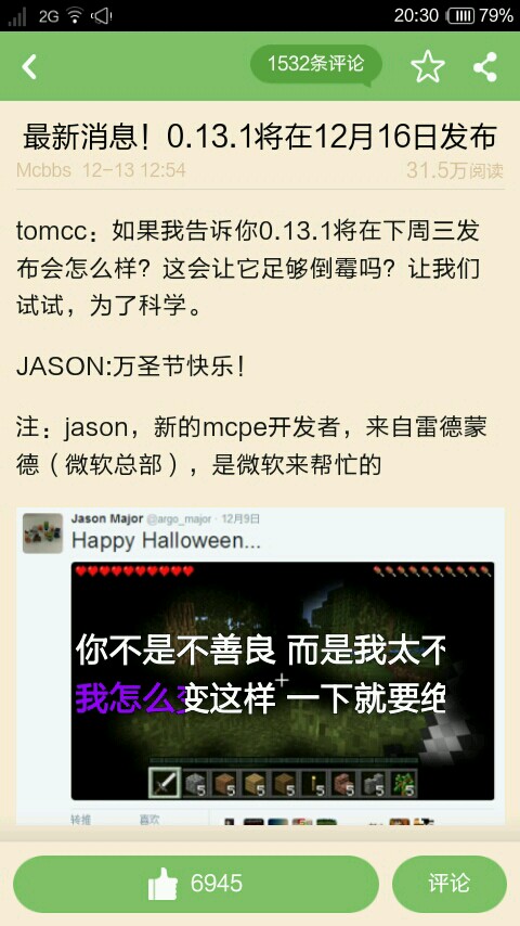 好消息 好消息 0.13.1将在下周三发布! 所有怪物头颅可以带。 万胜节快乐!