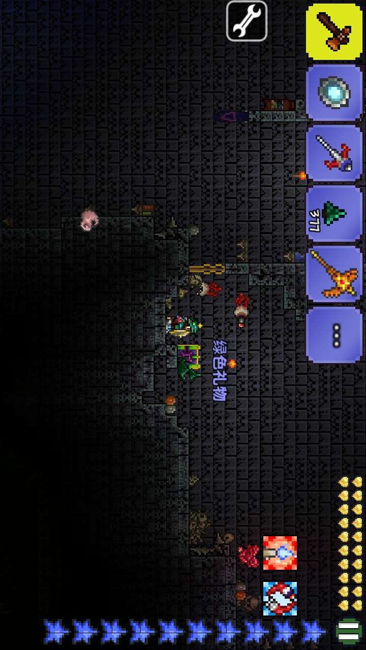 如图,把松叶块放在箱子周围,如果放在右边,就站在左边拿着松叶块狂击箱子,彪出一堆箱子之后点开背包,发现箱子就在右边,拿到装备就无敌了哈哈。不过松叶块似乎挖不掉,只能炸开。。。