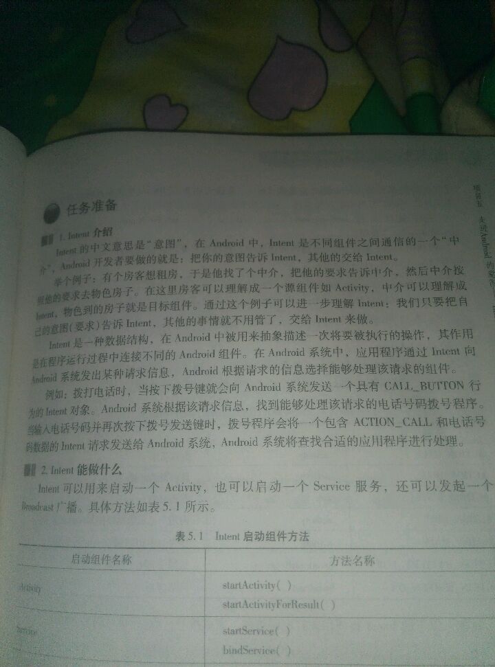 5.Intent:Intent是android中的一种消息通信机制(媒介),专门提供组件互相调用的相关信息,实现调用者和被调用的解耦。
