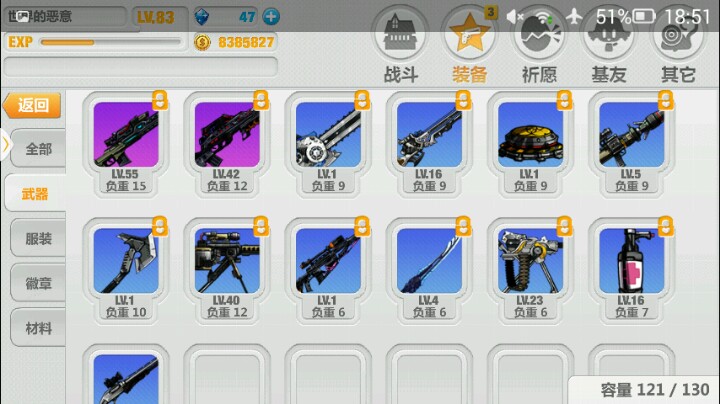 然后我是才玩,21级,里面的装备就是绿 蓝。紫。品质,有星级阶级。装备有突击枪 狙击枪 地雷 手雷 大斧 长剑 榴弹炮 还有电锯。