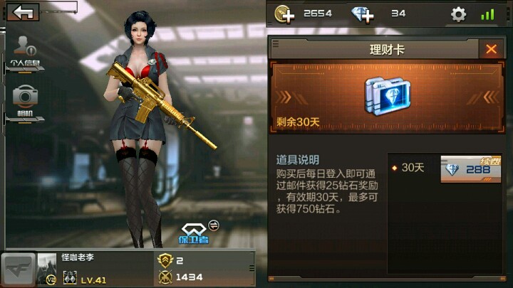 只要288钻石的理财卡可以购买永久武器~