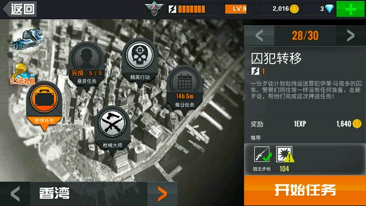 然后呀,游戏现在有三张地图,風先生马上十级的人都没过完第一张图呢。第一图里有三十个普通任务,每天五个赏金任务、一个每日任务,再加好多大师任务。很恶心的,除了大师任务要用冲锋、散弹、手枪外都用不到它们好吗,我花那些金币是做什么,28关时我被要求买新武器,同学,你的杀伤力不够了呦(~˘▾˘)~买新枪吧。我尼玛,1000多钻石啊,我那个位数怎么破!!!