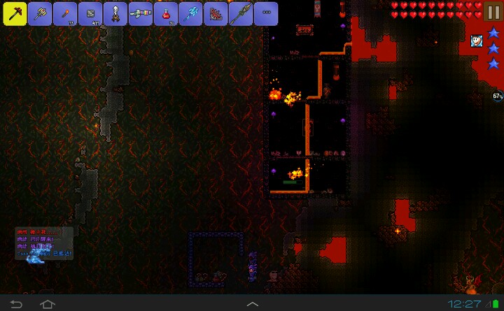 我用手機來玩泰拉瑞亚,我想去肉山。