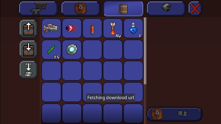 用松树块在箱子左边向右边划,看见箱子左上角安上了松树块就点背包,最上面有一个酒桶的图片点进去就行了