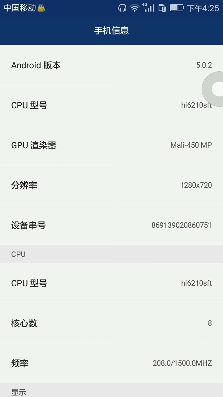 问下荣耀4X移动版高配是什么CPU?
