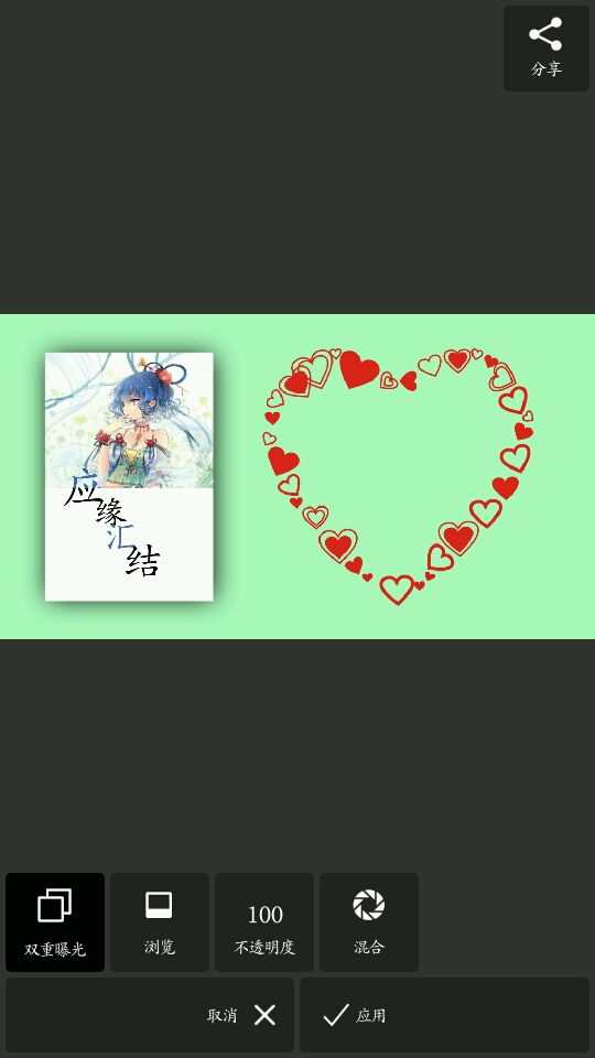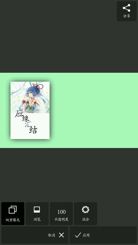擦掉后打字排版后保存,然后再打开一张纯色图,裁剪——>双重曝光,再加一张黑图,