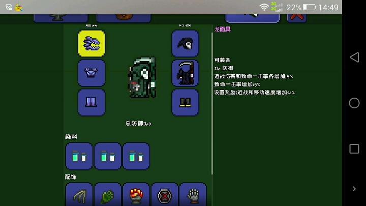 钛金锭合成装备(奖励:攻击敌人后概率闪避一次攻击),饰品全穿上。