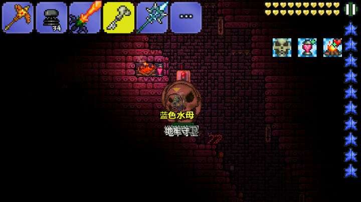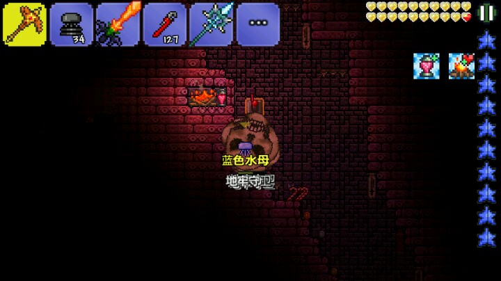 拿着水母雕像的我只要木剑就能行啦(当然,很慢,最好来点攻速快的,又没剑气之类特效的,反正都是一刀一滴,爆击两滴啦!)