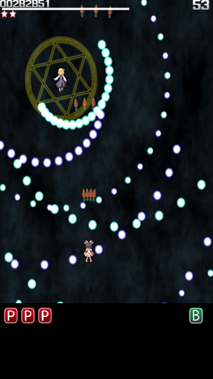 最后一张符卡是自创符卡,两个弹源围绕boss发射弹幕,可以简单的看作范围攻击。这个可能有安定点,但是追求速度过也是可以的,脸一般不是很黑的情况不会有封位。。