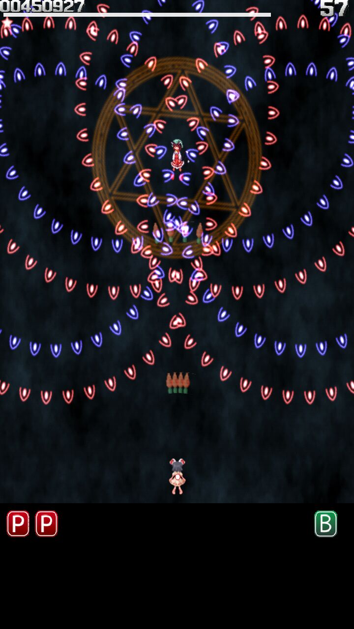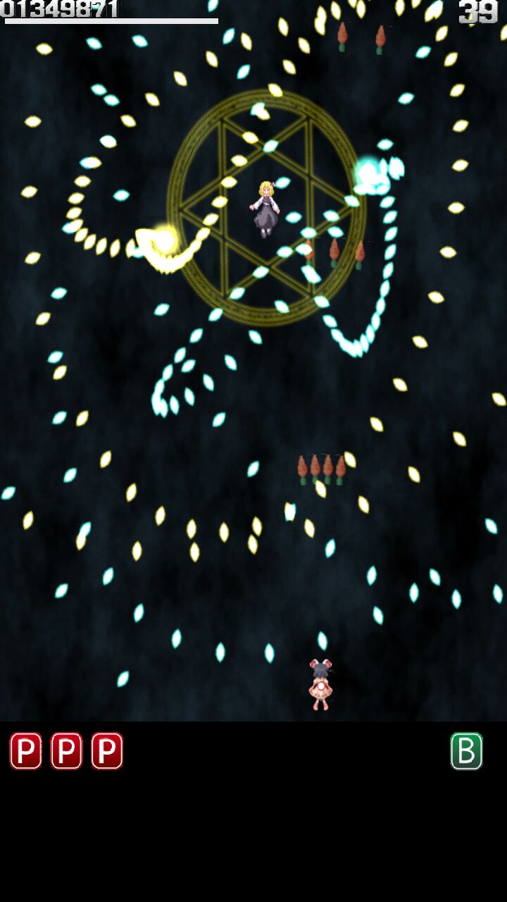 终符根据仙符「尸解永远」和方符「奇门遁甲」做了改编,总体上来说和非符一个级别的难度。。两层鳞弹会呈五角星(偏向于杨桃。。)扩散,理论上有安定点。。散开后弹间范围也比较大。