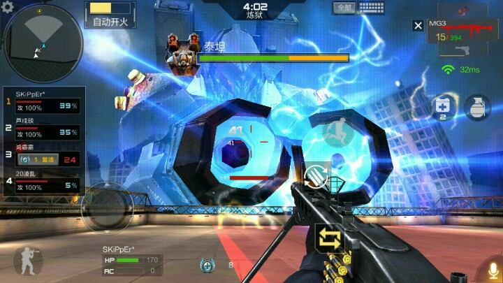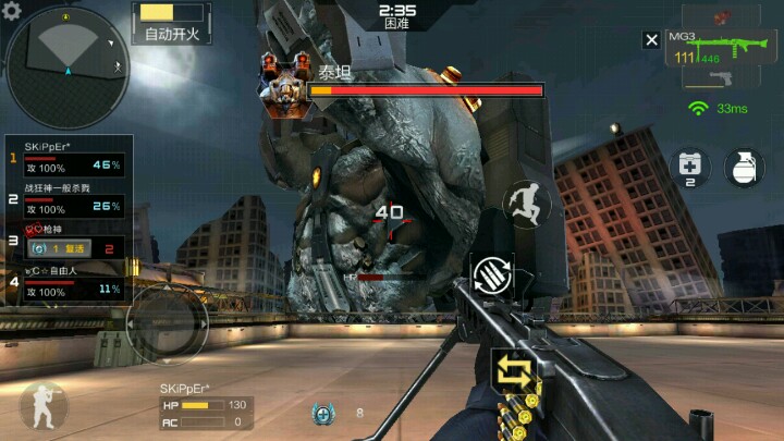 接下来就是最最重要的巨型泰坦了,弱点是嘴、肩膀、胸部中间那颗❤,先来说说英雄难度的出招:先是到处乱锤,很多新手都是满图的乱跑,这其实很好躲,你只要一开始就往最后面那堵墙跑就行了,根本锤不到你。然后就是发导弹,这个看地上的红色攻击范围,离开就行了,最后就是团灭大招激光射线(对新手来说←_←)泰坦在发激光之前会把手交叉举过头顶妖娆的扭几下然后放下,看到这个起手式你就要准备了,这个技能的攻击形式主要是中间和两侧,你只要跑到中间稍微往外就行,如果泰坦是攻击中间就可以淡定的往旁边移动,如果是攻击侧边就可以往中间移动,反正屏幕没有提示让你离开攻击区域就可以停止移动了,不要直接跑到中间和最侧基本就可以躲掉,一共会发射五次。英雄难度就这几个大招。