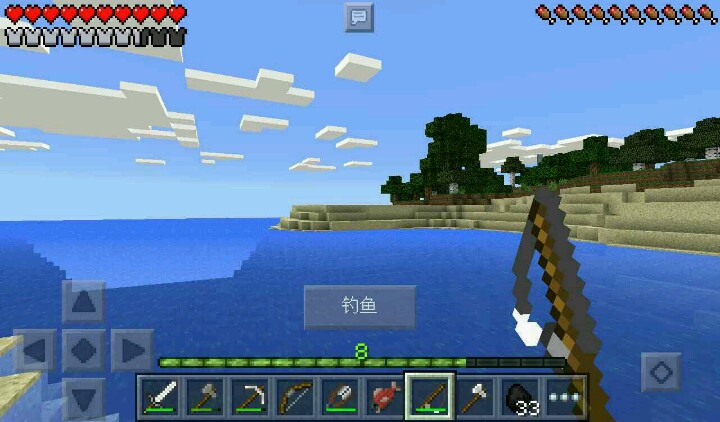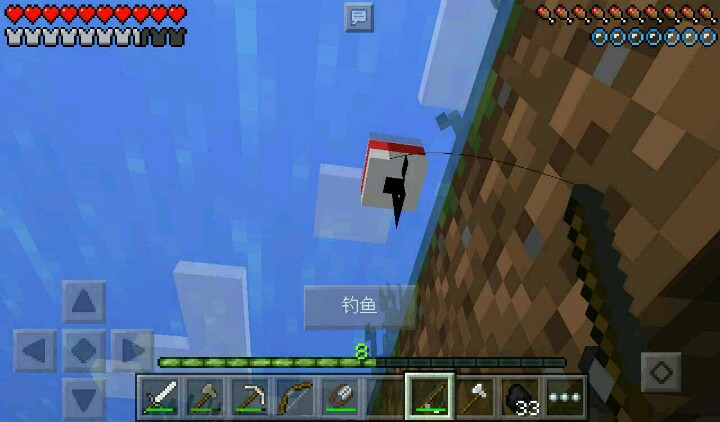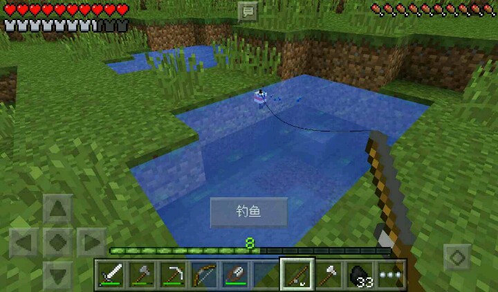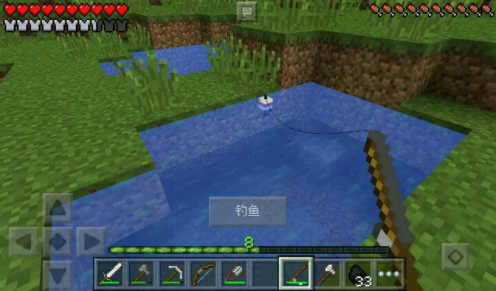我做了钓鱼竿,烧铁,在池里钓鱼,发现鱼了,可是没掉到(因为截图),我再次钓鱼