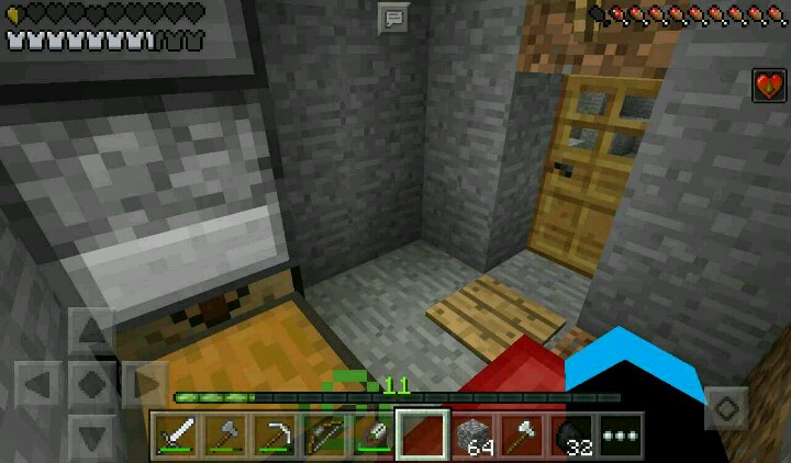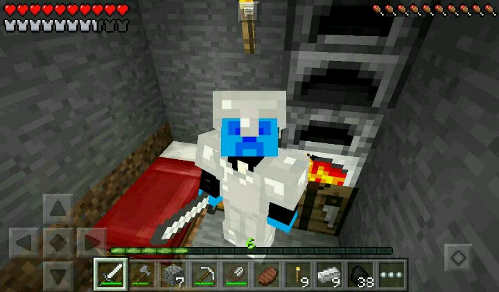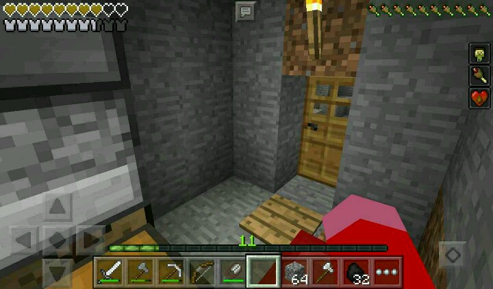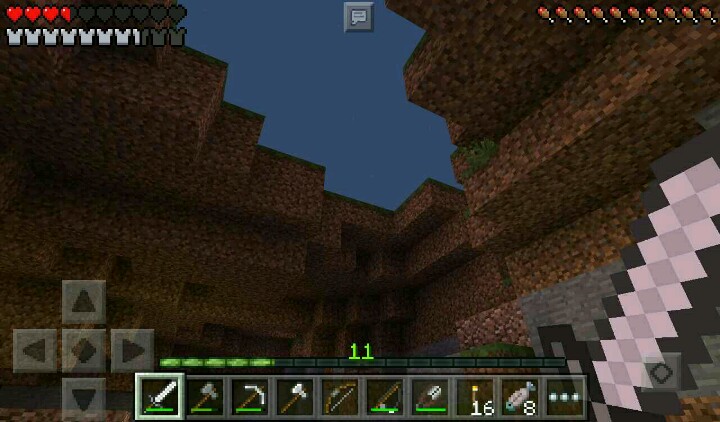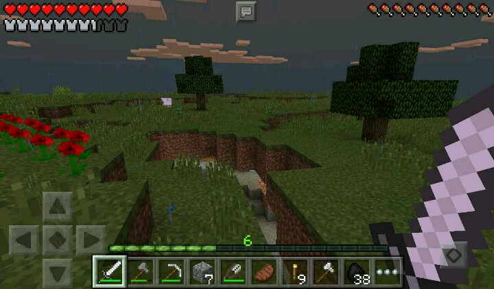 外面下起了雨,我只好继续挖矿。走了一下就发现了岩浆,我只好先挖旁边的铁矿。回到家里,铁矿烧好了,我做了铁套装,拿着铁剪装逼……这时,夜幕又降临了