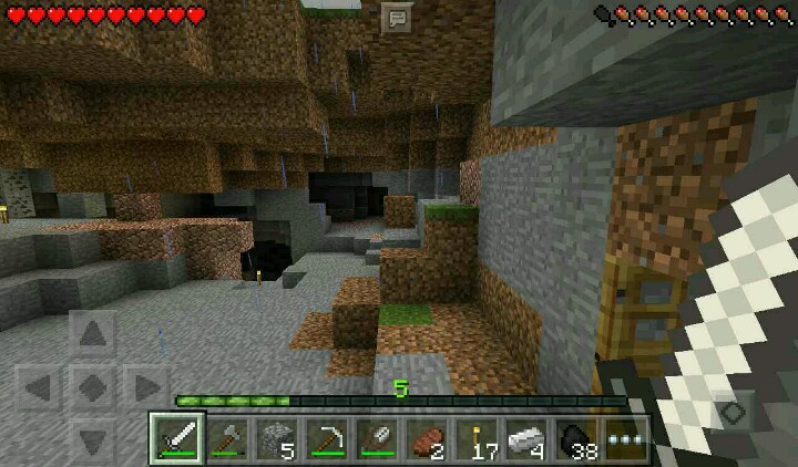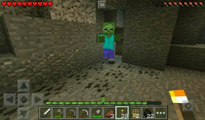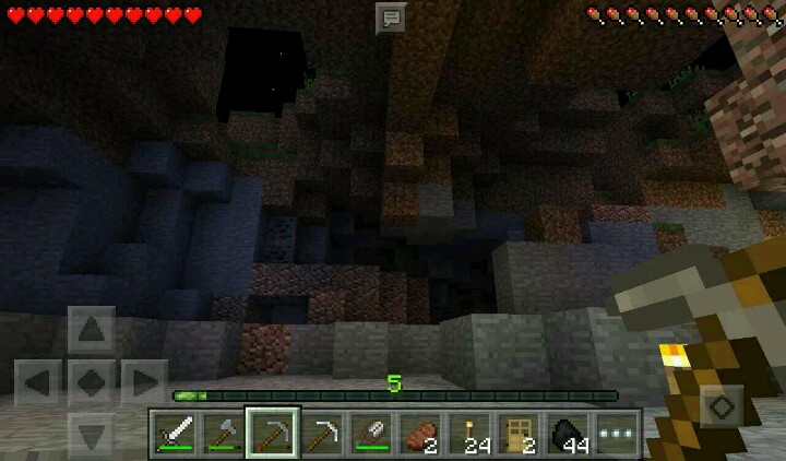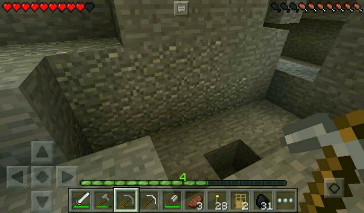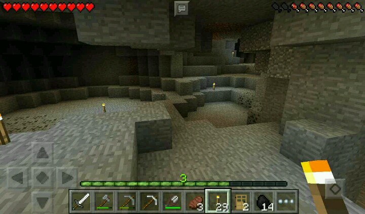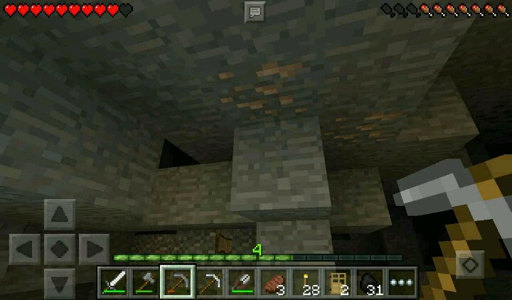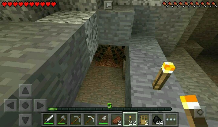 我走向了另一边的矿洞,插满了火把,这个时候就开工。开工的时候,挖到了一只僵尸……挖掘完毕,突然有一个大坑……在头顶上,还有铁矿……