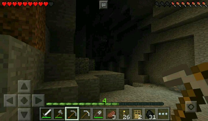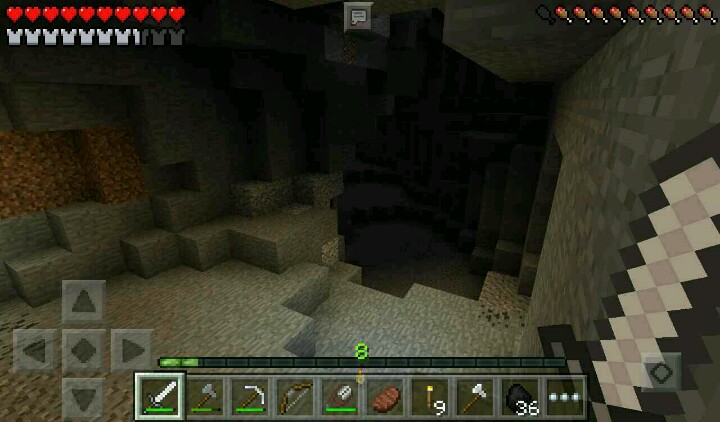 当我返回的时候,见了一只小黑……夜幕降临,回去睡觉……过来一天,往更深的地方走去,发现了一只蜘蛛(别管他),挖到铁矿,但挖着挖着,石镐爆了(石镐真不给力,就差一个都爆了……)