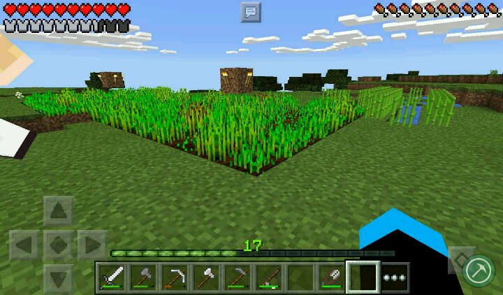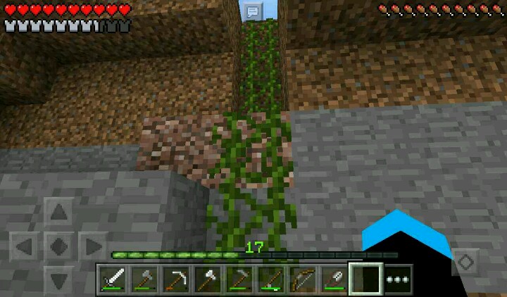 我清理了许多草,获得了许多小麦种子,种了两块田(手累……),又开始去剪藤蔓了,做好了一个新楼梯
