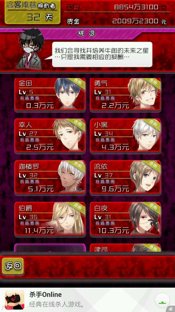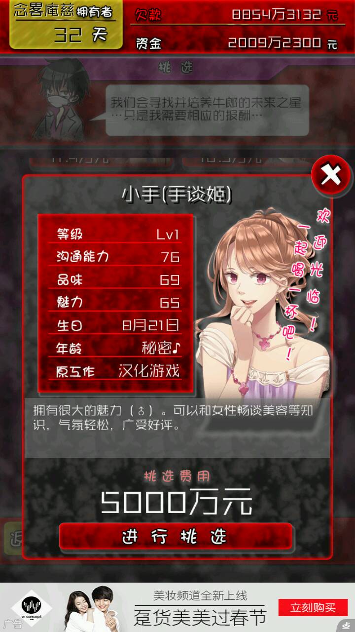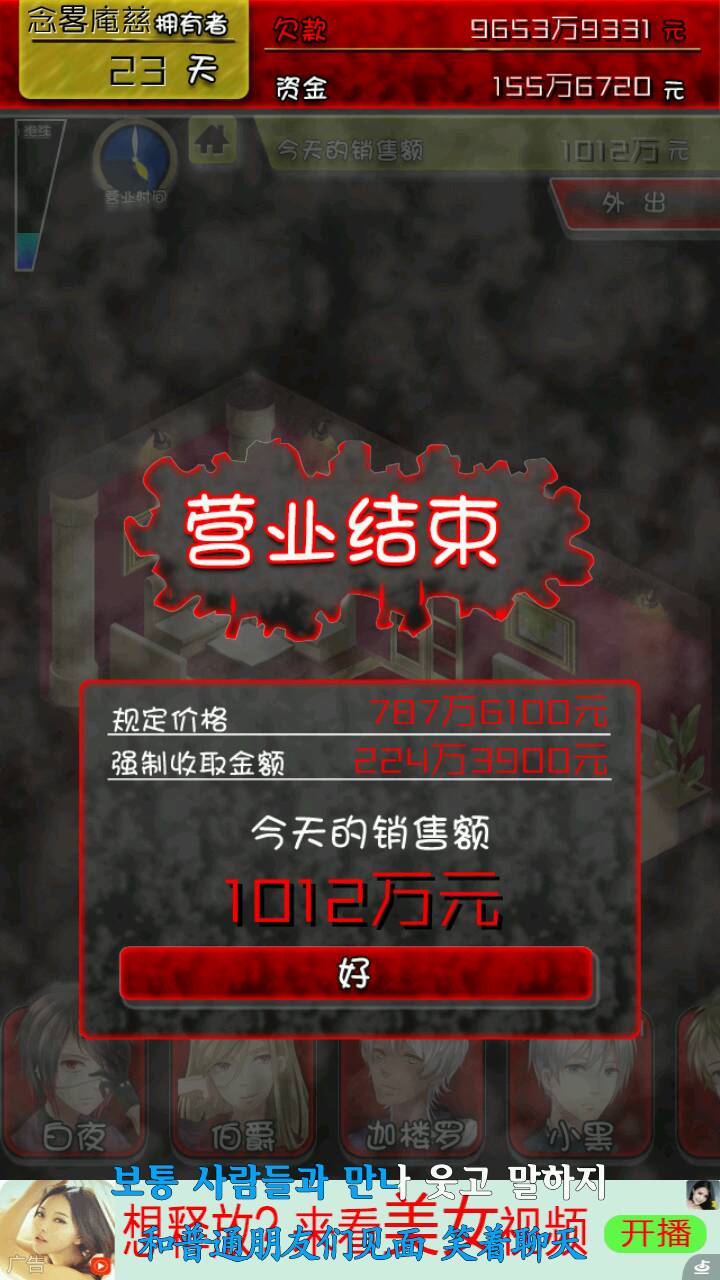 真的,这玩法真心特有意思!一开始羊驼我没有弄清楚游戏的说明,就导致我亏本了蛮多钱的。在游戏中你可以使唤你的牛郎去服侍某一个客户,你可以给他们选择不同的菜单,一开始我日入十几万就开心到上天。游戏中你还可以去讹钱(敲诈)听说最多可以敲诈五倍,但是会有警察来查房,羊驼遇到第一声警车铃是方的我不要不要的。牛郎店会有富婆光顾,你只要在外面收集足够的精♂气就可以召唤出富婆。富婆的特点是叫价高,而且讹钱时最高可以讹到五百万,可是我居然在群里看到有人讹了一亿!!!(表示特别吃精)