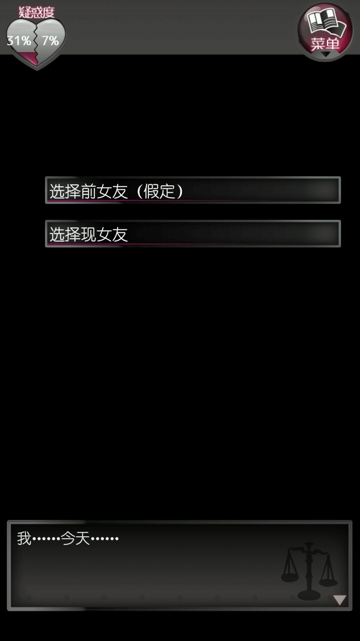 首先这不是个恐怖游戏,但我真的受到了惊吓,bgm简直吓人。前期本来觉得前女友还挺可爱的,到了后期一看见她就有种不好的预感,各种刁难男主。关于怀疑度,我个人一直把两人的怀疑度控制在20%以下,打通结局的时候前女友14%,现女友0%(听说这游戏会影响结局)最后我打出来的几个结局,全是暴力结局,还有那个前女友暴力结局真的吓哭我了。。。病娇真特么可怕,我还是比较喜欢现女友这种正常人
