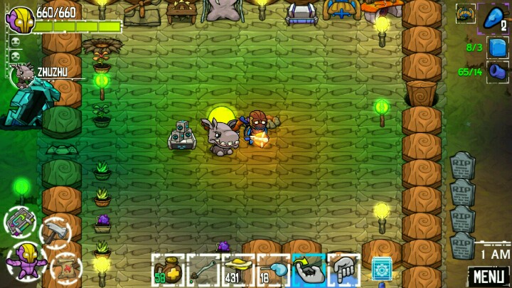 每日与这些造型各异的怪物们以命相搏,一把趁手的武器就是你生存的最大保障。和所有的RPG游戏一样,装备越好战力越高。游戏里有五花八门的武器供你使用,不同的武器属性用来针对不同的怪物,在这一点上,游戏又有了传统割草RPG打怪升级的感觉。收集是游戏的一大乐趣之一,和很多沙盒游戏设定相同,所有强大的武器都是需要你收集物料进行制作的,在茫茫的异星,不要忽视每一块碎片,因为他们都有可能成为你日后挑战精英怪神器上的一份子。