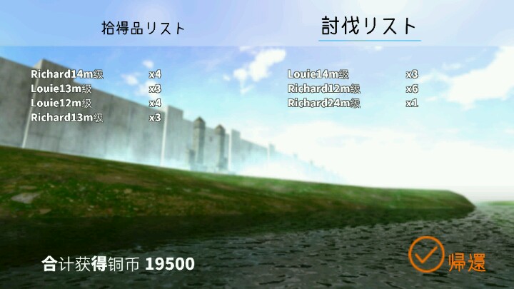 游戏总体不错,光是作为一款单机游戏就足以称作经典。在联网情况下还可以进行联机任务,壁外活动,更使其具备可玩性。当然,金币抽奖的第一发就中了兵长的我也是很开心的。于是便通了目前的单机所有任务。有什么不懂的可以问。
