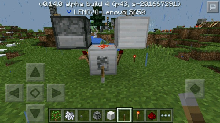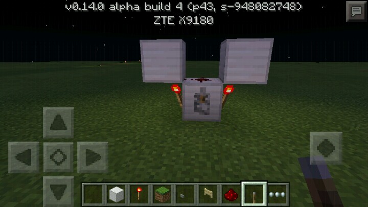 火把是熄滅的,然後把2-3顆紅石分別插在熄滅的火把那端,如圖.