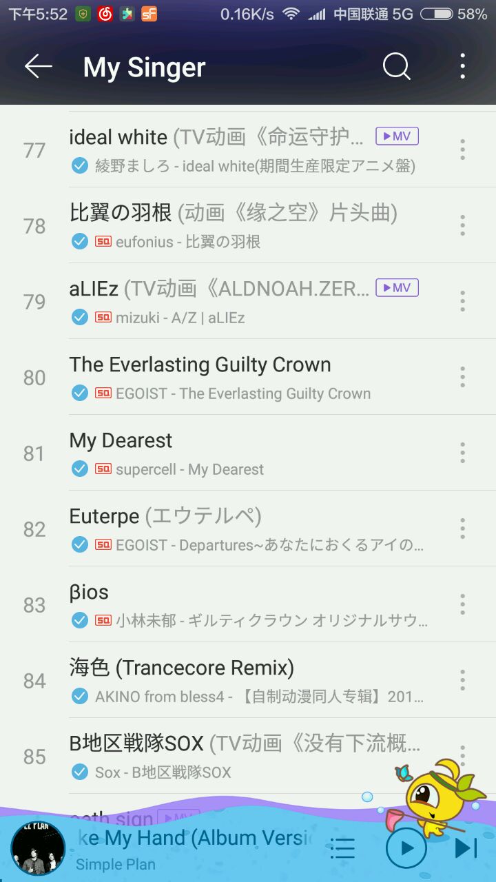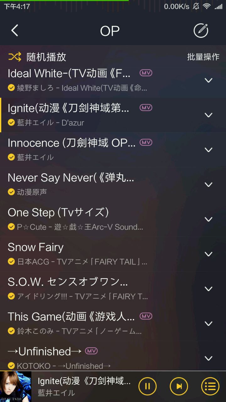 换手机重新下歌,内心其实是崩溃的,因为每次找OP都是各种煎熬各种找不到,然而酷我把我感动哭了……你这是全OP全ED收录的节奏么qwq……要不要这么逆天qwq……找得到找不到的都有好伐?!10000000赞