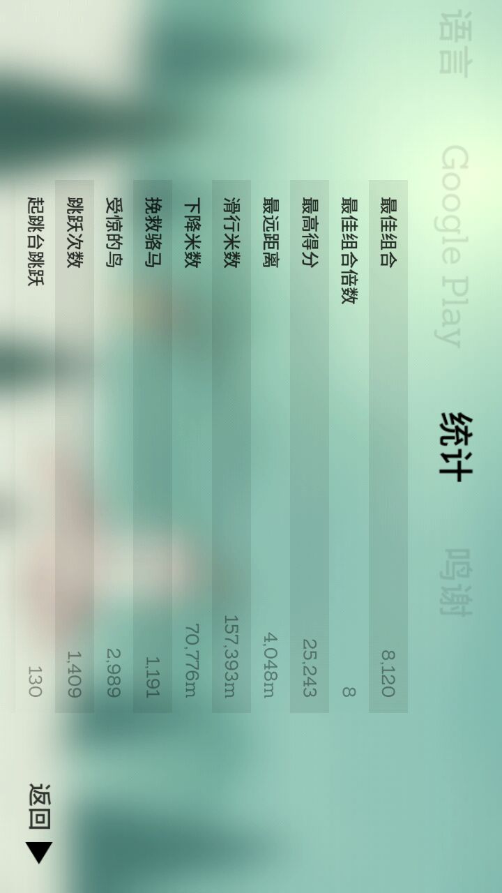 画风很好,操作也简单,只是需要看准时机就可以越过鸿沟。不管是画风还是音效我都十分喜欢。里面有四种道具,磁石可以吸收金币,悬浮羽毛可以让人物漂浮一段时间,在这段时间内即使后空翻失败也不会重新开始。骆马号角可以呼唤出一批骆马。最后一个道具可以让人物飞行一段时间,可以用来飞跃障碍,鸿沟。 我现在解锁了第二个人物,达到了11级,总之就是这样的啦。推荐一下,很好玩的。最后附上截图。