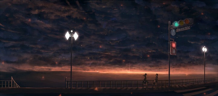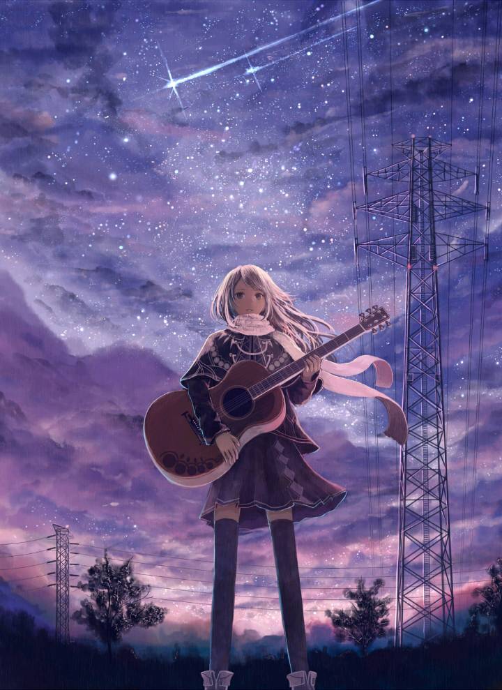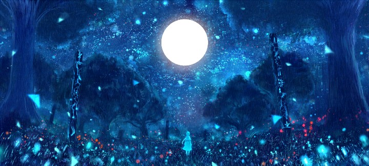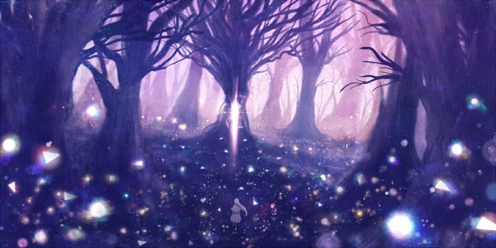 bounin作为插画师,尤其善于运用绚丽的光影,色彩单调而清新,线条华丽,令人炫目,十分适于做壁纸哦。
