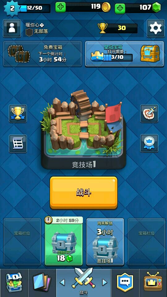 进去时给你一副地图,中间有条河,河的两边有俩桥,我想,诶,中国象棋呀?不过我淡定的看了看不是。好吧,河的两岸有堡垒,三座。两边的路上各有一座,中间有一座主楼,还有一个炮,等会看图。玩法我怎么觉得喇嘛眼熟,哦哦哦(^V^)是卢瑟(炉石传说)不管他了,你有四张牌,每用一张就会换一张,你的能量会慢慢增加,只能靠用出牌耗能量,(能量会满最多10格,别想一直加加加能量,太贪不好)好啦好啦,看图吧!对了每打完一关,会有一个宝箱,会有金币啊,卡牌啊等等。游戏还是很好滴嘻嘻嘻(>^ω^<)