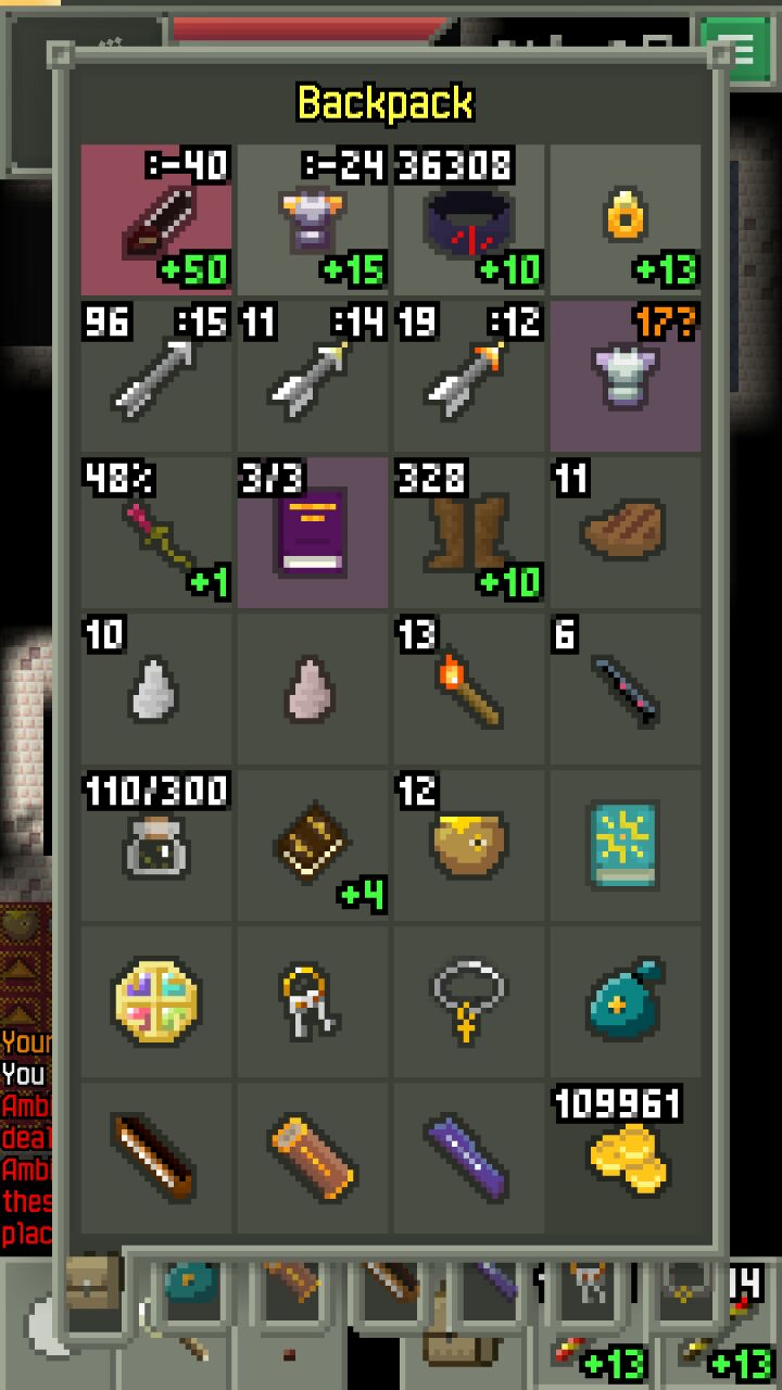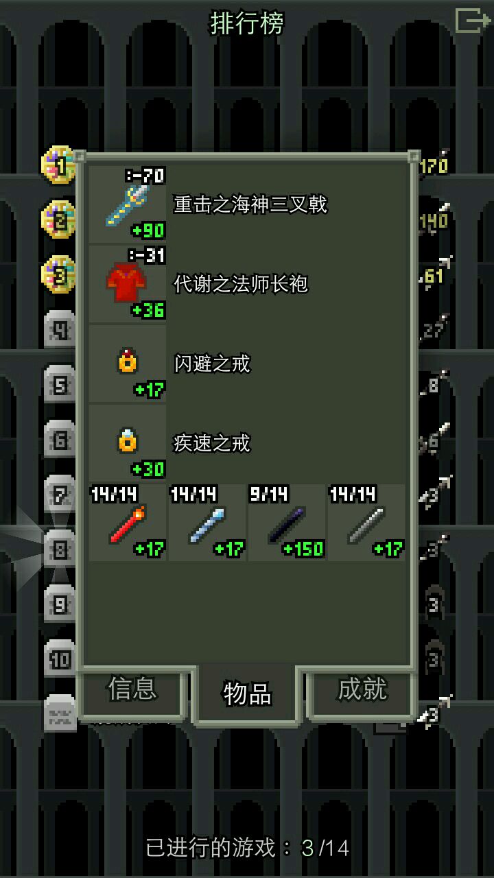 游戏难度比以前增加了不少,怪物和Boss(尤其是第三层的DA-300和两个机械人召唤机)更是强到变态。。。〒_〒,还好那个露水瓶能强化装备,我的英语水平也还凑合,加上我人品好(地牢里道具都是随机刷出来的)才能两次通关O(∩_∩)O,不信看图。总之要好好利用露水瓶强化装备,第二层给老头蘑菇后选“Draw out the dew”后打怪会爆出魔法露珠,在地牢越深处强化上限越高,在隐藏关卡:地下森林、地下骷髅城(有骷髅王)、盗天狗(Teng,第二层Boss)老巢(有一个藏宝室)、地下海滩(有蟹王)和地下黄金城(有飞空大盗)里的怪都会掉魔法露珠,打倒一定数量的小怪就可以挑战上述隐藏Boss(都掉能高级强化装备的远古武器,找两个铁匠用50个暗金矿强化)。不多说了,看我的截图吧。