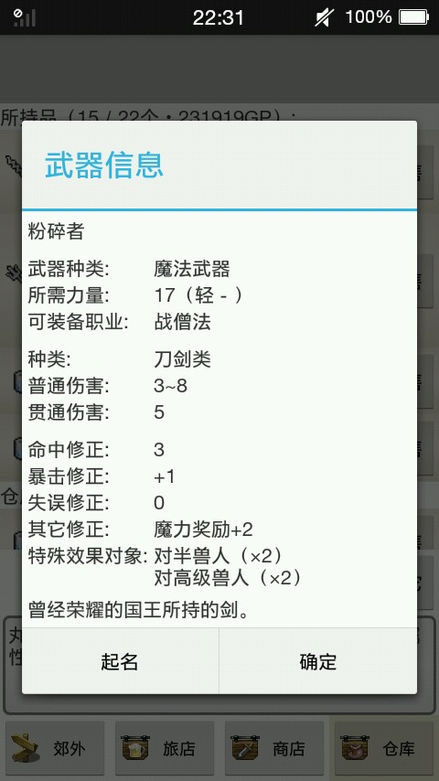 这游戏的话,说是放置类其实也不全是,简单来说就是拿起手机自定义一下角色,调整装备,设定目的地,出发探索,接下来你想去看动漫还是玩其他游戏,只需要等到探索完毕回来查看成果即可。麻雀虽小五脏俱全,和大部分的RPG游戏一样,这个游戏也有商店:也就是买卖装备、补给品的地方;旅馆:自定义角色,为角色调整装备、技能,设置小队成员的地方;仓库:放置战利品,买来的物品的地方;郊外:选择所在街道(城镇),探索目的地,查看探索过程事件的地方,不同街道(城镇)可探索的地方也不一样,商店里卖的东西也不一样。刚开始玩的时候,游戏只开放了三个街道(城镇),而新的街道(城镇)则需要完成任务来开启,使得游戏有一个循序渐进的过程。开头的三个街道(城镇)各开放了两个场景,打通这六个场景需要约60小时的探索时间(还是说我不会玩?【苦笑)。也就是说,打通关或需要一个多月?!自定义角色是这个游戏的一大特色,你可以设定无数个自己的角色,名字,职业,头像,属性,种族,还可用自己手机里储藏的图片来替代头像(通过任务加入的角色无法进行修改,部分街道〈城镇〉需要特定角色才能进入)。设定战术也是十分有意思的一个地方,例如设置休息的频率,攻击魔法的发动率,回复品的使用率,逃跑的几率。单个角色的战术设定会丰富得多,例如在某个队友受伤或敌人残血时,进行治疗或发动攻击魔法,发动的几率;更可以设置对某个特定种类的敌人做出的行为,例如对触手怪使用克制的火系攻击,对克制自己攻击的强大怪物实施逃跑(说实话我到现在都没完全掌握,有时因为战术错误而导致戏剧性的战斗结果)。虽说这是一文字来展现的游戏,不过放弃画面的制作转而游戏内容的制作这点来说是很不错的(表示我在玩的时候总能脑补出战斗场面),通过脑补来展现游戏画面是很多文字游戏的特点。且由于是放置类RPG所以不会因为一次性玩个一天而产生审美疲劳感到无聊。【一本正经的说完感觉会让人觉得我是个死板的家伙吧_(:з」∠)_不过貌似把游戏介绍写的跟说明文似的真的会有人看么Orz】【手机没法截屏只能发一张探险手册了_(:з」∠)_探险手册也不是我自己的Orz清晰度还那么糟Orz高清的评论区有】【同时还没通过人家同意把图给挪过来用了Orz我手机没发截图请原谅我吧】