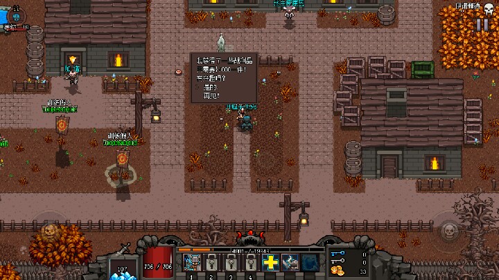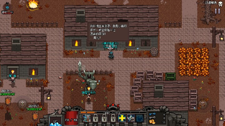 游戏中因为敌人是一波一波的所以打完一波后会有一段时间在这段时间里会有几率出现地牢,神像,圣殿,也只有在这段时间里才可以进入地牢和商店。