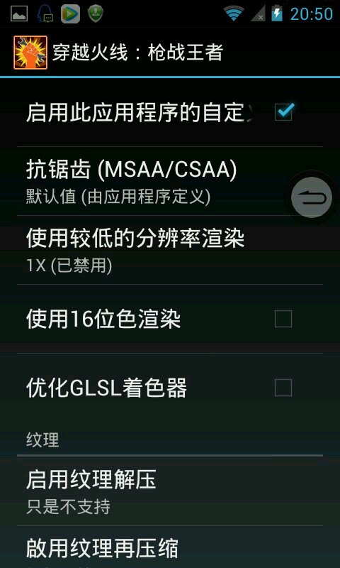 调低cf画质,渣机也能玩的飞起!需要root,附图,先找到cf,选择后,勾选最上的一个,然后就可以随心所欲的调画质了。